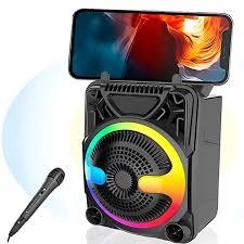 Con luces RGB, soporte para micrófono y base para celular. Con rango de trasmisión inalámbrico de 15mts