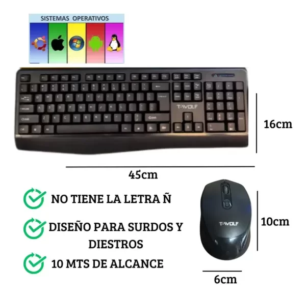 Combo Teclado + Mouse Inalámbrico T-VOLF