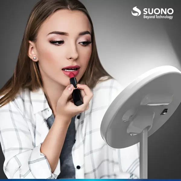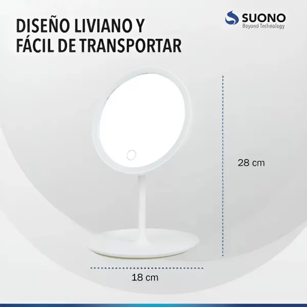 Su forma redonda refleja toda la cara y el cuello al mismo tiempo, facilitando la aplicación completa del maquillaje en comparación con los espejos circulares tradicionales.