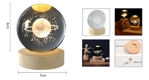 Lampara Escritorio Esfera 3d Bola Cristal 9cm
