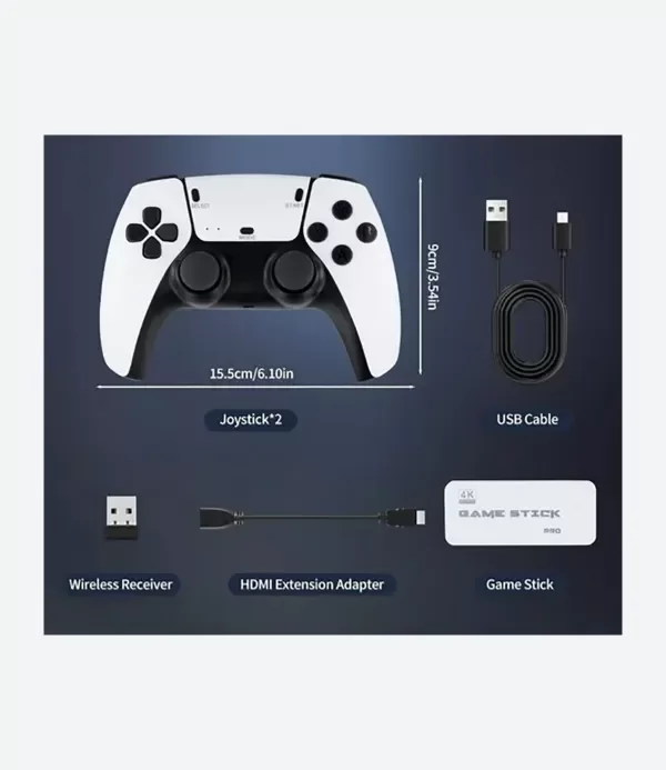 La Retro Game Stick M15 es la versión mejorada del clásico Game Stick, ahora con joysticks inalámbricos de diseño inspirado en PS5 para una experiencia más cómoda y moderna. Ideal para los fanáticos del retro gaming que buscan practicidad, variedad y mucha nostalgia en un solo dispositivo.