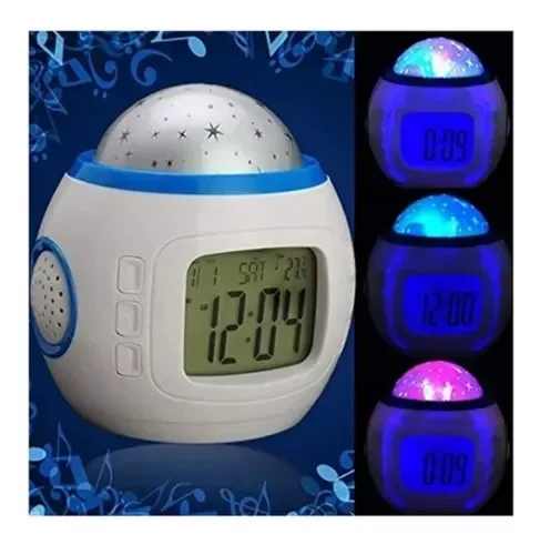 Increíble reloj despertador con proyector de estrellas, ideal para ambientar la noche y descansar como si estuvieras al aire libre.